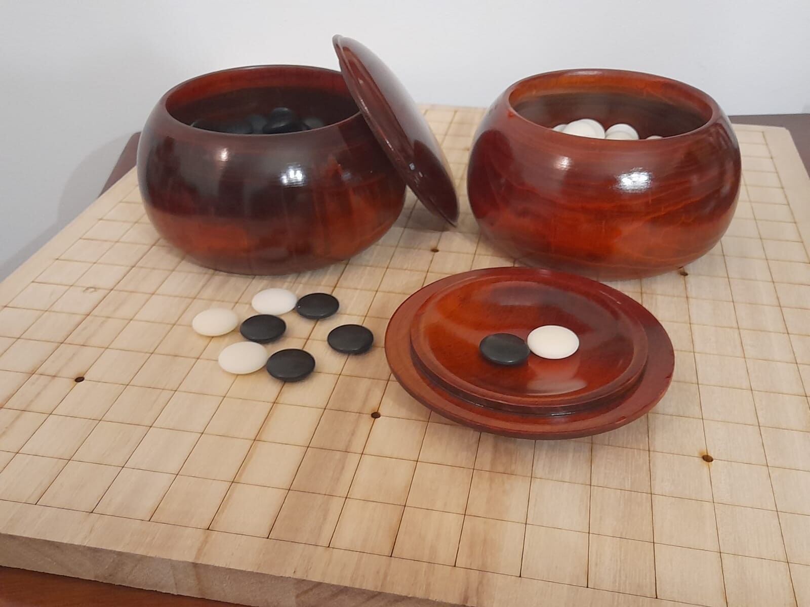 Kit 19x19 en madera con piedras de 21 mm y gokes especiales. El tablero ofrece una estructura firme y una superficie agradable al tacto, ideal para partidas más estables y tradicionales. Las piedras, de tamaño estándar, brindan una manipulación cómoda y clara durante el juego. Los gokes permiten almacenar y organizar las piedras de forma práctica y tradicional. Es un set completo y de buena presencia, pensado para jugadores que buscan mayor calidad en su equipo de Go.