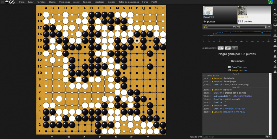 12 199   1471 40 16.83   Bravo Sebastían ACG 3.0 3 4  -W2  +B14  -B10  +W21  -B3  -W5  +B20 26.0   25.5   19.5