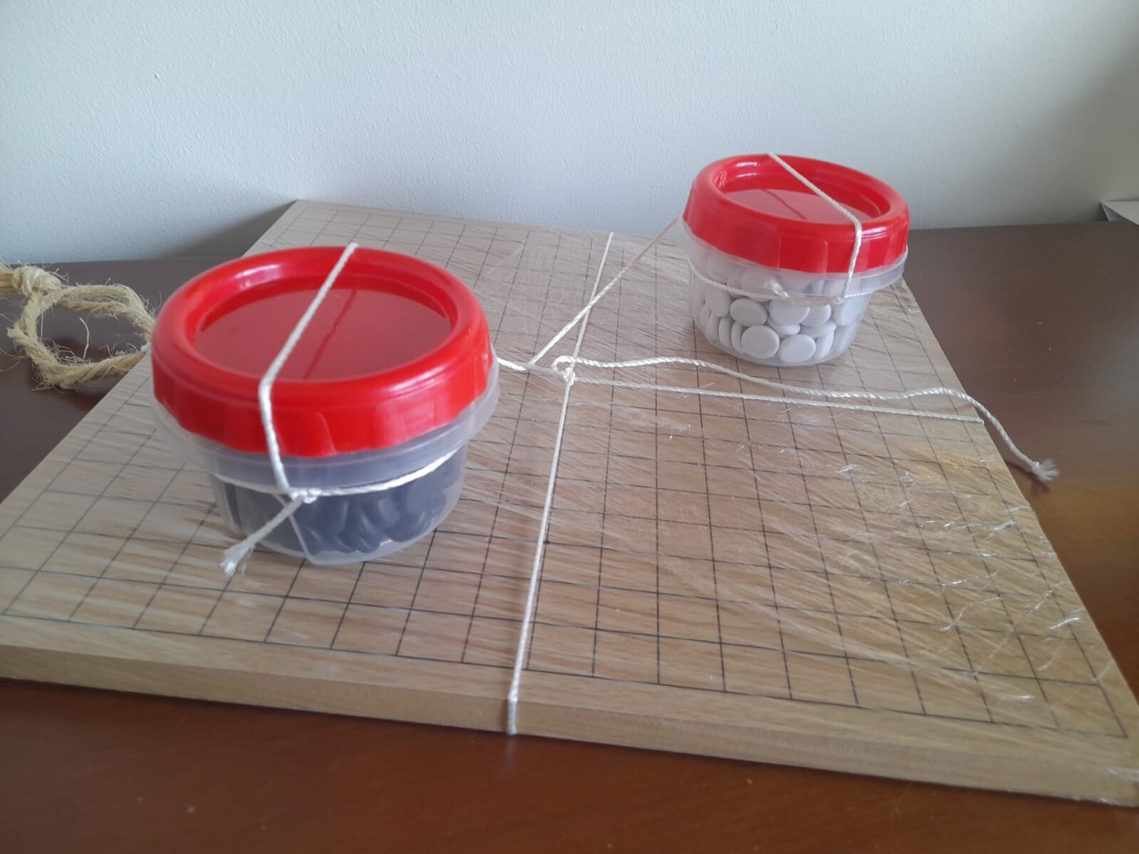 | El kit incluye un tablero doble faz en MDF de 19x19 y de 13x13, junto con un kit de piedras y dos gokes |